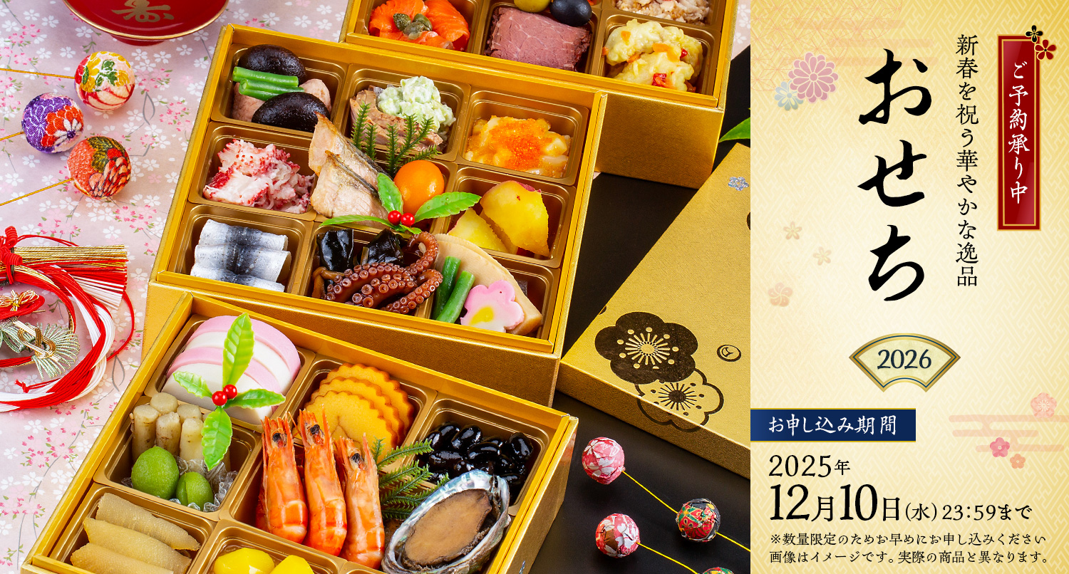 おすすめ商品 送料無料 速水もこみち監修おせち 伝統とモダンが出会う、新春のおせち! 17,820円 在庫あり 送料無料 幸寿 お手頃価格が人気の三段重!全44品 19,980円 在庫あり 送料無料 楽寿 お子様からご年配の方までご家族みんなで美味しく食べられる和洋中おせち。全44品 31,104円 在庫なし 商品一覧を見る お知らせ 2025/09/01(月) 兼昌おせち2026ご予約受付中! 2024/08/01(木) こだわりが詰まったおせちです! 2021/11/01(月) ECサイトを開設いたしました お知らせ一覧を見る 商品カテゴリ おせち料理 喪中おせち お食い初め 全商品一覧を見る 商品カテゴリ クリスマスケーキChristmas Cake おせちOsechi 喪中おせちMosechi お祝いCelebration おすすめ商品Featured Products 全商品一覧All Items